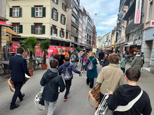 In unserer biriemte Drummel- und Pfyfferschuel leere d Buebe und Maitli mit Begaischterig und Fraid. D Uusbildig zem aagfrässene Fasnächtler isch e wichtige Dail vom Leerplan. Bi uns verkimmeret kai Talänt, nit numme bim drummlen und pfyffe!